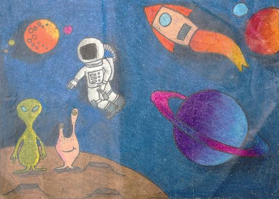 A Messy Art Room How To Draw A Simple Space Themed Picture Youtube